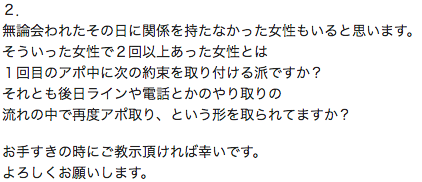 無論会われたその日に関係を持たなかった女性もいると思います。